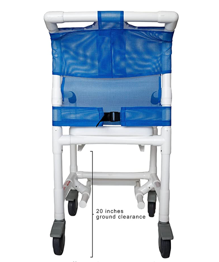 - Raises Shower chair by 2" so it will clear a 20" Commode